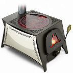 Корпус печи изготовлен из высоколегированной жаростойкой стали с содержанием хрома до 13%. Печь имеет возможность тонкой настройки интенсивности горения и поддерживает режим длительного горения. Чугунная дверца печи оснащена светопрозрачным экраном и самоохлаждающейся ручкой для удобного управления процессом горения. Съемная стеклокерамическая или чугунная варочная поверхность позволяет готовить пищу на открытом огне, в том числе и в казане.